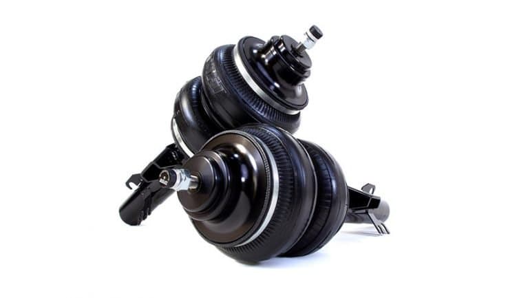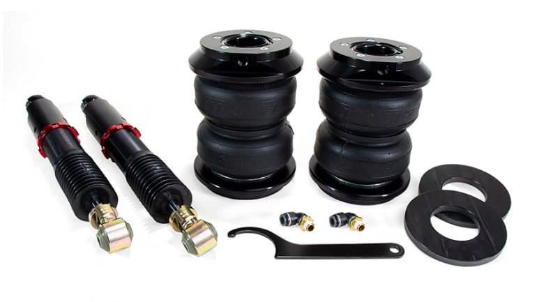 With the rear kit, not only have we engineered a set of double-bellow air springs, but we’ve specifically made ‘em with the option of modular modification opportunities. What that means is, these air springs are built with an integrated adjustable piston and threaded shock body. Installation is possible without having to modify the spring seat, and it’ll give you a serious amount of lowering in the process. But if you want the lowest of low looks, simply cut the spring seat and install the air spring as shipped. Whatever option you choose, you’ll be getting at least 152mm (6.0in) of drop from stock on the rear axle.
