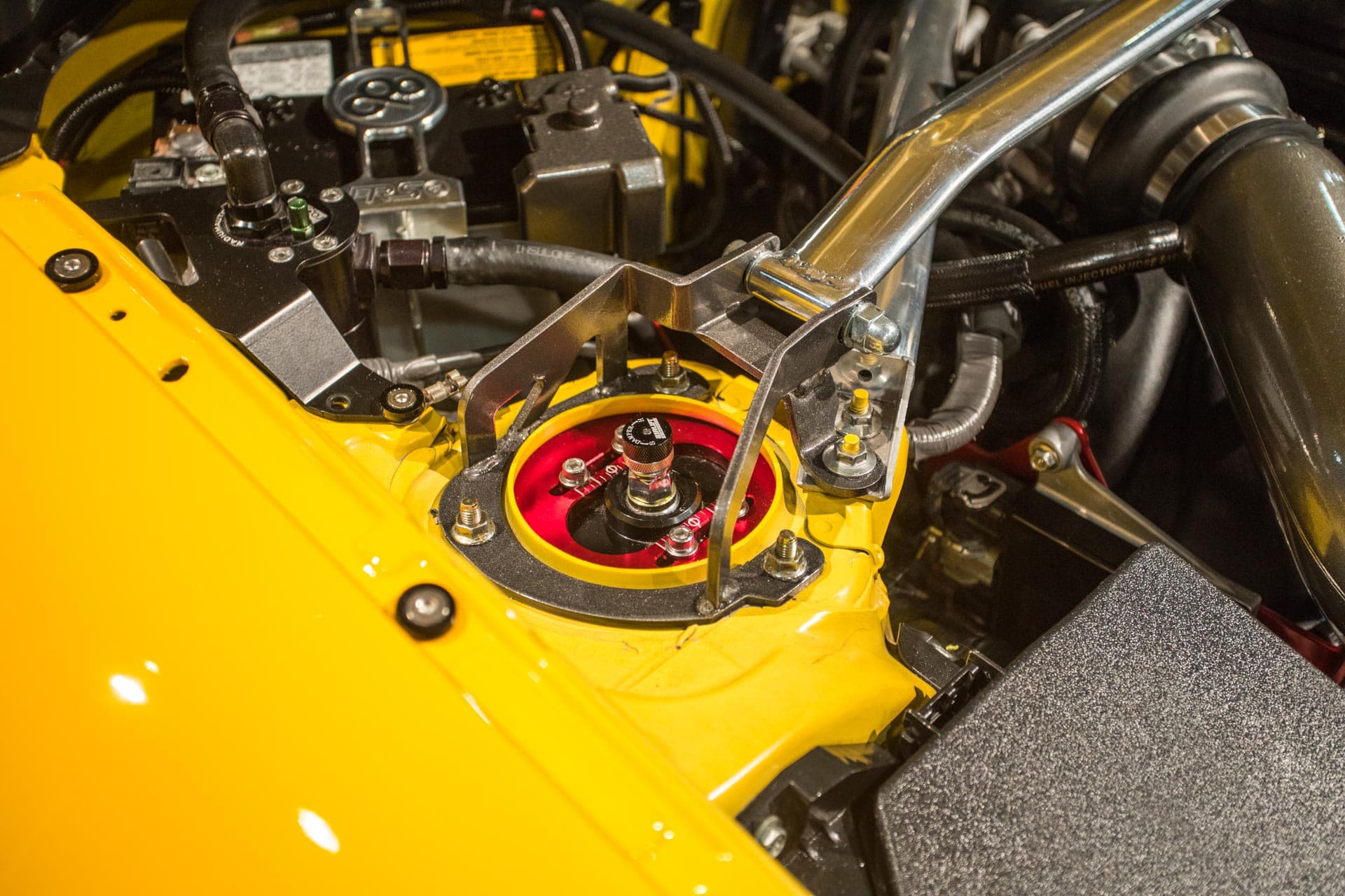 The Porsche 964 boasted super-wide arches, satin black bodywork and classic rally-inspired fog lights, complete with bucket seats, an exposed intercooler and a big ol’ Bisimoto turbo tucked under the rear bumper.
