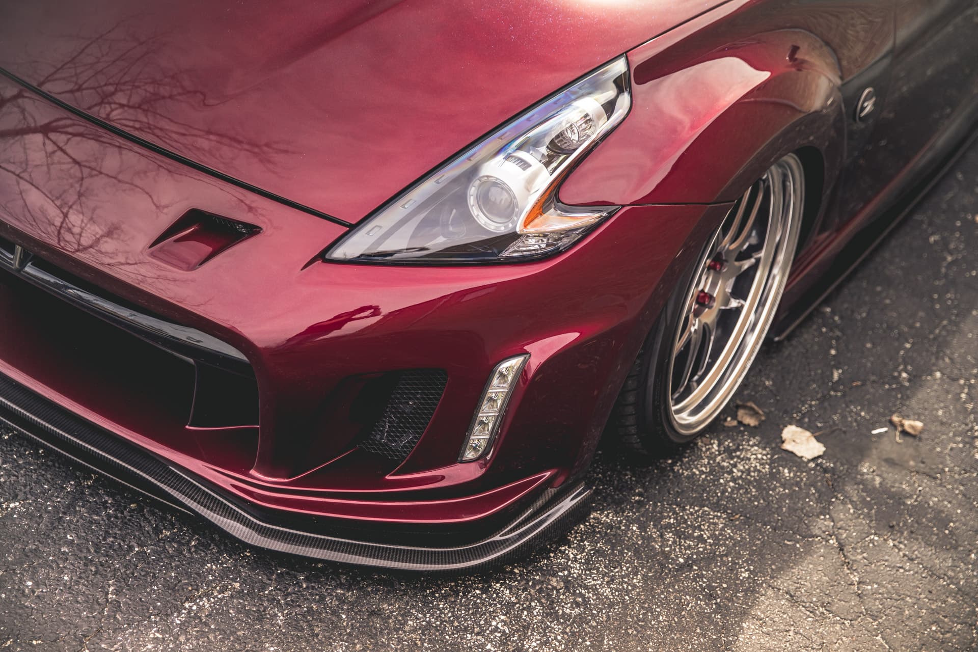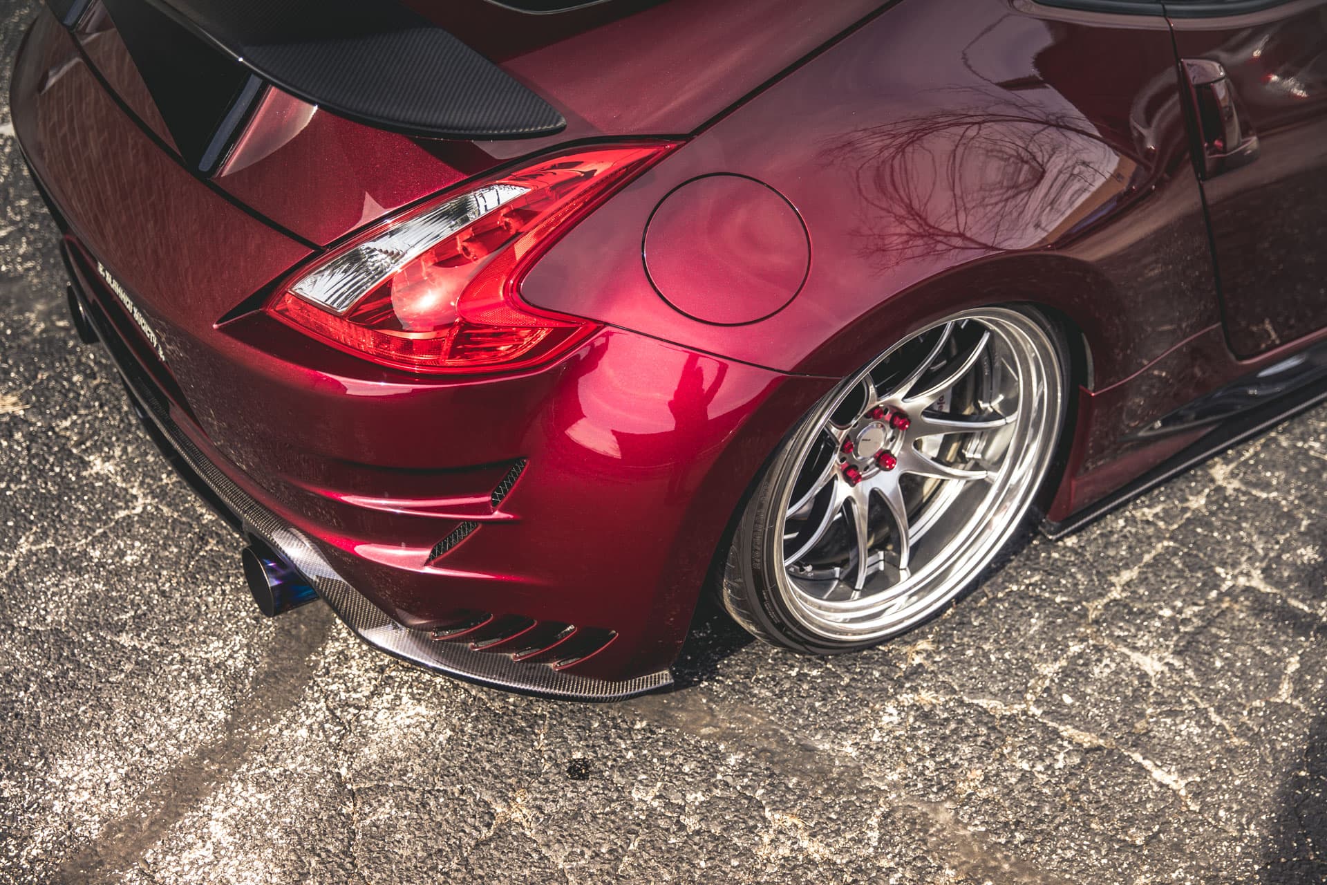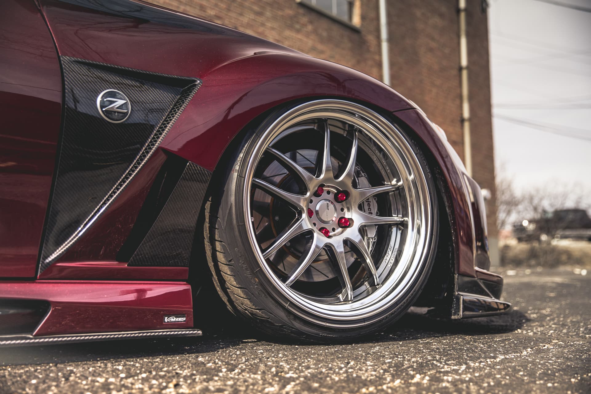 The cherry on top is a tarmac-scraping stance, creating a low-slung profile to accompany the Varis’ curves. Gene achieved this by using and air suspension from Air Lift Performance on the 370Z.