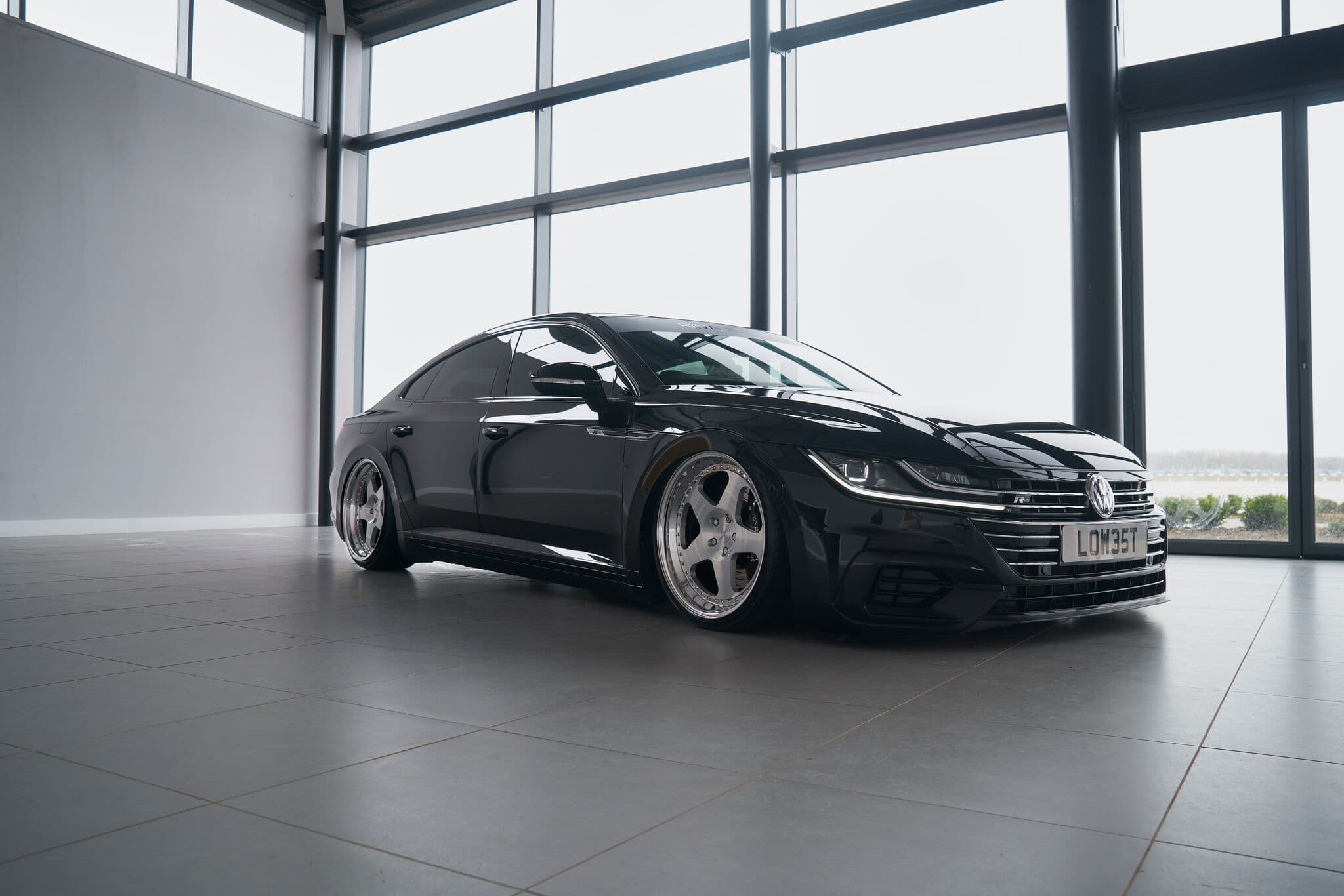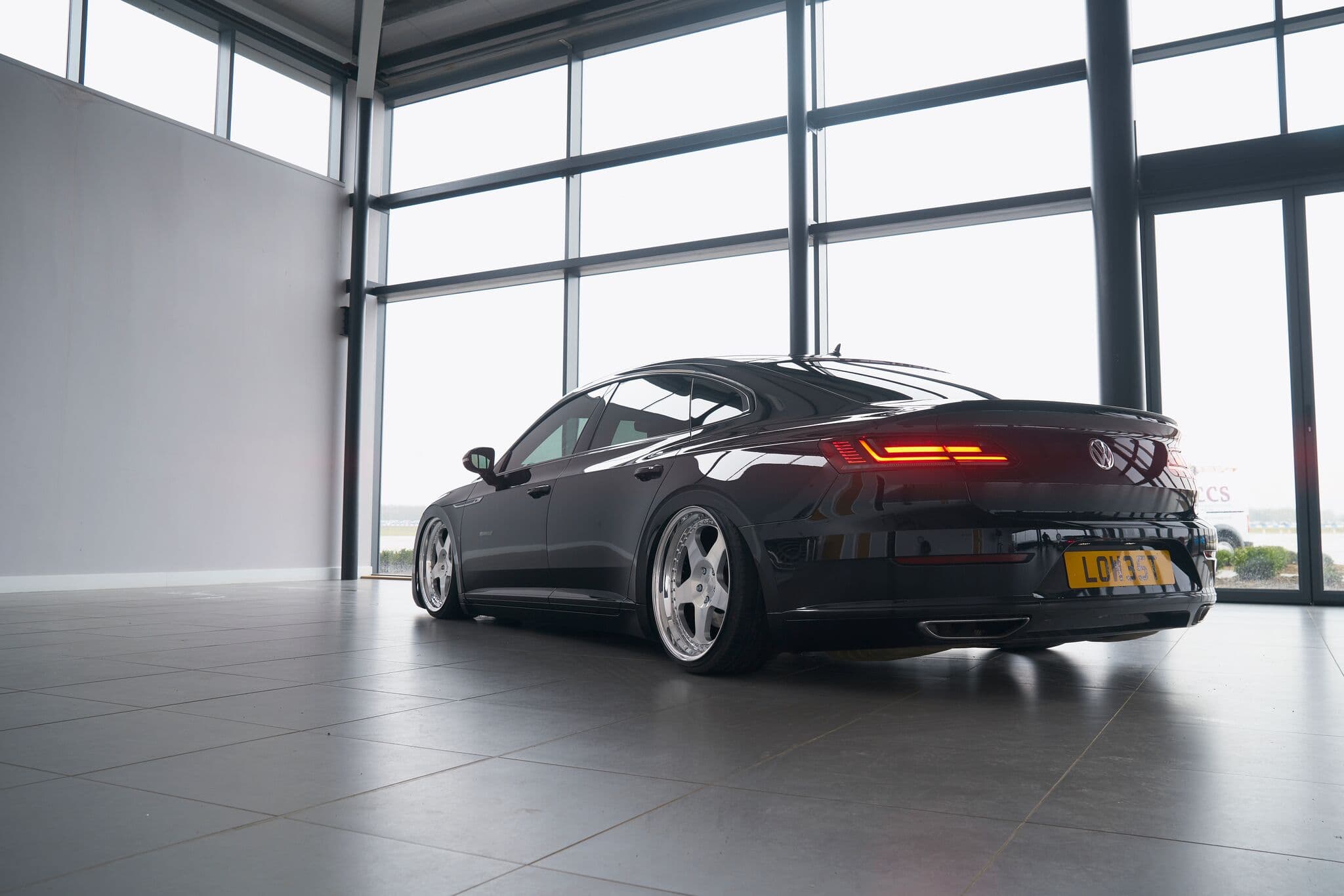 What you’re looking at here is a VW Arteon, an all-new model as of 2017 which also serves as the replacement of the Passat CC. It’s sleeker, smoother and much faster than the Passat – all things we’re big fans of here at ALP! But from the factory it’s still not low enough, and if there’s one thing we love seeing slammed to the ground it’s big ol’ 4-door saloons.